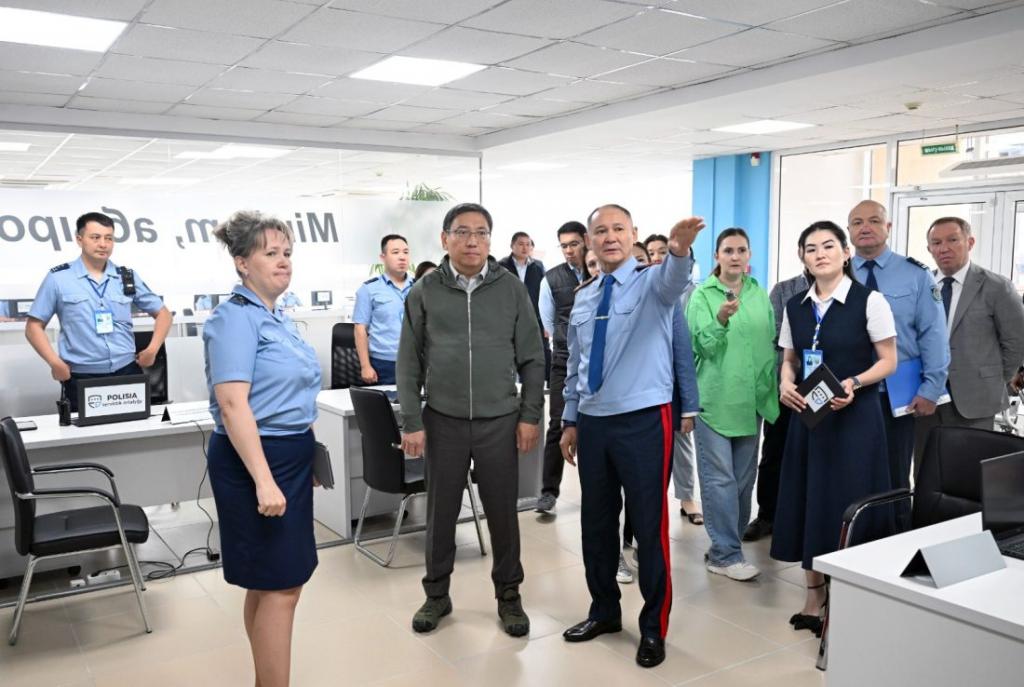 Аким Алматы Ерболат Досаев в ходе рабочего объезда посетил сервисный центр полиции в Наурызбайском районе. Прием граждан здесь начнется с 23 июня. Такие центры создаются во всех районах при поддержке проектного офиса акимата города. На сегодняшний день приобретено и передано на баланс Департамента полиции восемь помещений, шесть из них уже полностью оборудованы и готовятся к открытию.