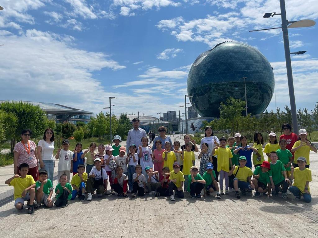 В рамках акции аппарат акима Есильского района провел для детей обзорную экскурсию по столице на двухэтажных автобусах «Red Bus» с маршрутом по главным достопримечательностям столицы.