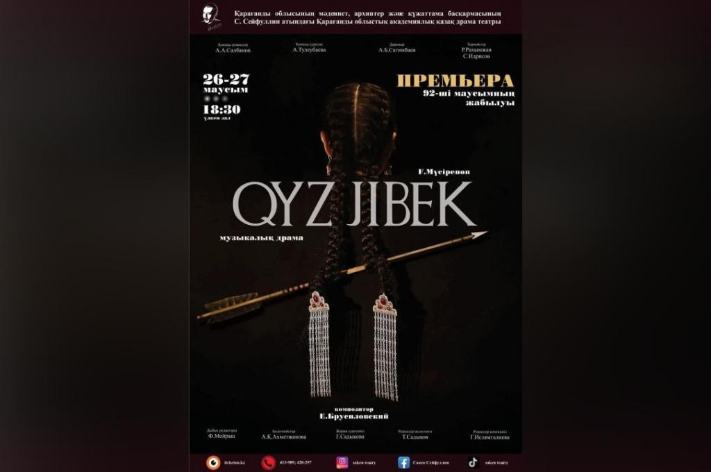 Карагандинский академический казахский драматический театр имени С. Сейфуллина завершает 92-й творческий сезон премьерой музыкальной драмы «Qyz Jibek». Это событие ждет театралов 26 и 27 июня в 18:30. Пьеса основана на трагической любви Жибек и Тулегена, и создана под руководством талантливых дирижера Абулхаира Сагимбаева и режиссера-постановщика Айдына Салбана. Важным вкладом в произведение стала работа известного драматурга Габита Мусрепова над либретто и композитора Евгения Брусиловского над музыкой. Надеемся на успех премьеры и дальнейшее процветание театра.