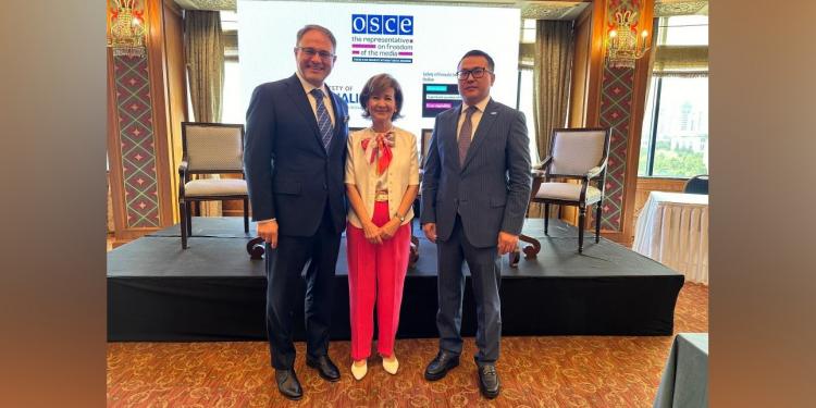 В Алматы были обсуждены вопросы усиления безопасности журналистов, как сообщает DKnews.kz. Роман Василенко, заместитель министра иностранных дел Республики Казахстан, принял участие в региональном мероприятии Организации по безопасности и сотрудничеству в Европе (ОБСЕ) по защите журналистов для продвижения свободы СМИ. На мероприятии были представители СМИ, научных кругов и гражданского общества из стран Центральной Азии и Монголии. Офис Представителя ОБСЕ по свободе СМИ Тереза Рибейро организовала это мероприятие и представила национальные инструменты и инициативы, связанные с безопасностью журналистов. В свою очередь, Роман Василенко отметил стратегическую важность сотрудничества с ОБСЕ для Казахстана и подчеркнул важность свободных и независимых СМИ для устойчивого развития и демократии. Казахстан выразил намерение продолжать партнерство с ОБСЕ для защиты свободы слова и прав журналистов. На фото: Gov.