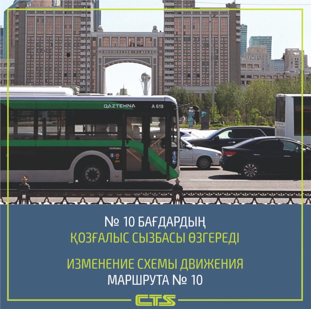 29 июня меняется схема движения маршрута № 10 в направлении аэропорта, передает официальный сайт акимата Астаны со ссылкой на CTS.
