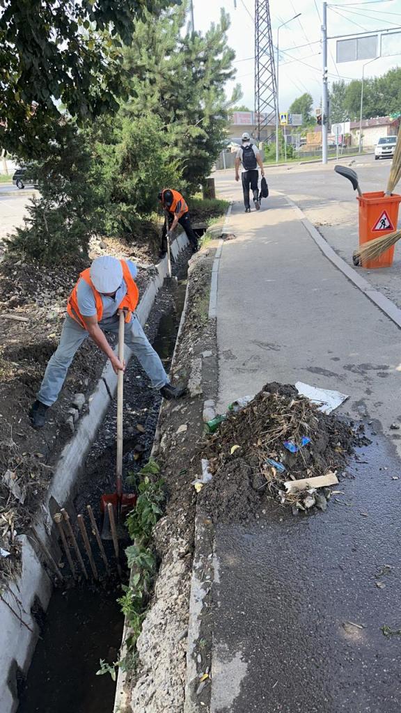 После сильного дождя, прошедшего 30 июня, когда по уточненным данным РГП «Казгидромет» в городе выпало до 11 мм осадков, а в Малом Алматинском ущелье 28 мм, что составляет почти половину месячной нормы осадков за июнь (59 мм), сопровождавшегося шквальным ветром, силами 320 рабочих и 92 ед. спецтехники организованы работы по очистке арычных сетей и переходов под дорогами, забившихся мусором, илом и ветками. В ночной период вывезено 210 м3 мусора.