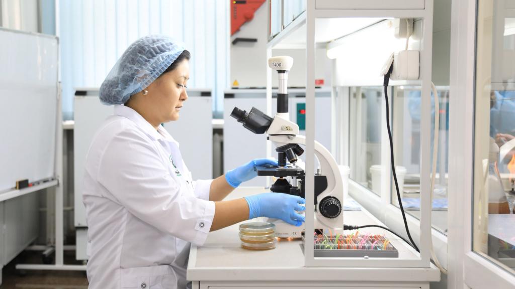 Вице-премьер посетила научно-производственный центр Института микробиологии и вирусологии. В настоящее время в его составе функционируют 9 научных лабораторий. В общей сложности здесь работает 170 человек. Ученые успешно реализуют ряд проектов, направленных на развитие отечественного производства.