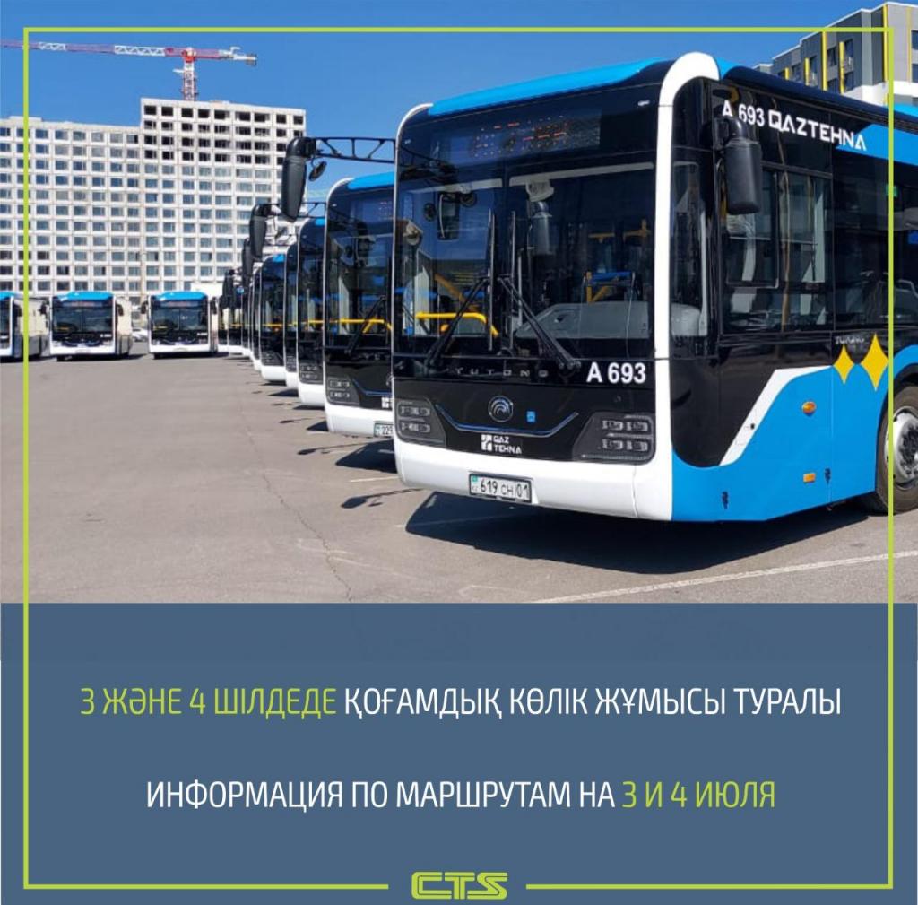 По данным CTS, 3-4 июля в Астане временно меняются схемы нескольких маршрутов.