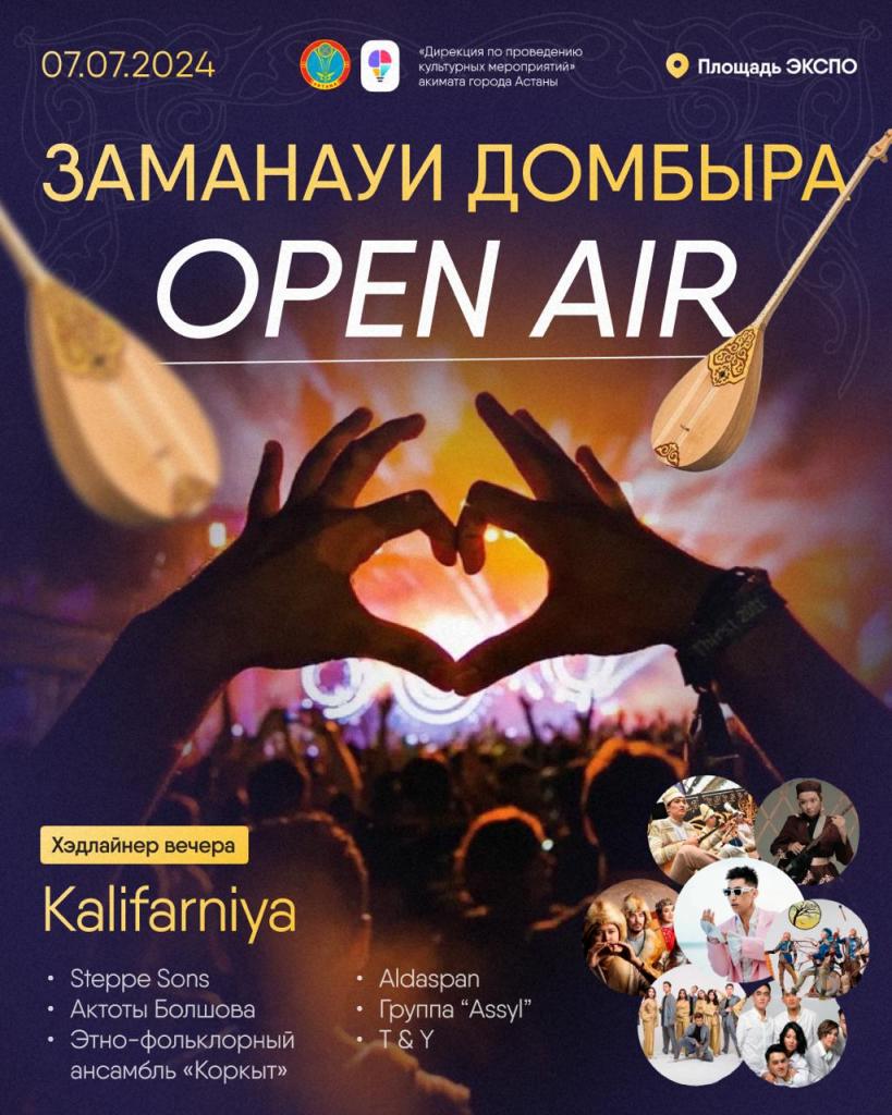 7 июля на территории ЭКСПО пройдет праздничное шоу-концерт «Заманауи домбыра», посвященное национальному Дню домбры, передает официальный сайт акимата Астаны.
