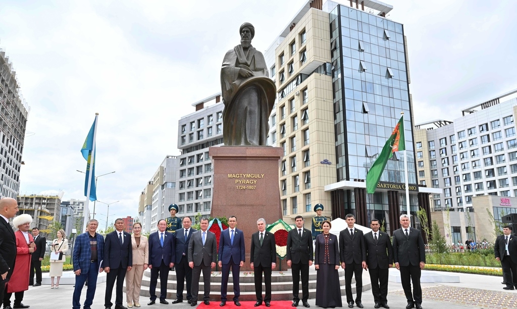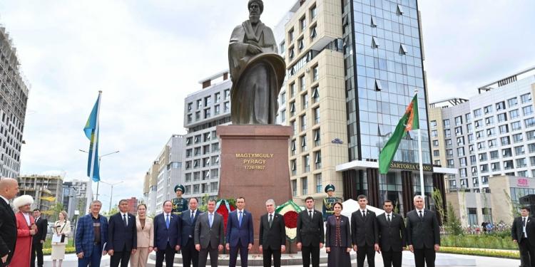 В Астане состоялась торжественная церемония открытия памятника выдающемуся туркменскому поэту и мыслителю Махтумкули. В мероприятии приняли участие Спикер Сената Парламента Казахстана Маулен Ашимбаев и Председатель Халк Маслахаты Туркменистана Гурбангулы Бердымухамедов. Маулен Ашимбаев выразил глубокие исторические корни дружбы и взаимопонимания между Казахстаном и Туркменистаном, подчеркнув роль обоих лидеров, Президентов Касым-Жомарта Токаева и Сердара Бердымухамедова, а также активного участия Председателя Халк Маслахаты Гурбангулы Бердымухамедова. Маулен Ашимбаев также отметил общность философии Абая и Махтумкули, выразив уверенность в том, что творческое наследие Махтумкули является достоянием всего человечества и стимулом для дальнейшего сближения народов двух стран. В рамках мероприятия было отмечено проведение научных конференций, инициатива о создании международной премии имени Махтумкули, а также духовное сближение и укрепление двусторонних отношений между Казахстаном и Туркменистаном.