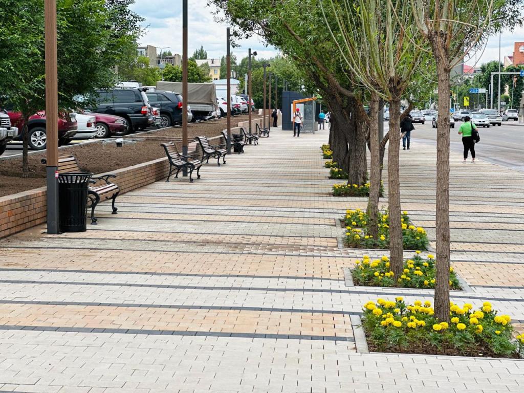 Комплексные работы по благоустройству общественного пространства по проспекту Богенбай батыра охватили территорию от проспекта Республики до улицы Ш. Уалиханова.