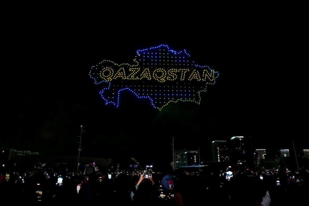 Для шоу дронов в небо запустили 1250 скоростных радиоуправляемых аппаратов, из которых 70 аппаратов — пиротехнические дроны. Это новая технология симбиоза дронов и пиротехники. Все визуальные эффекты будут синхронизированы с музыкой казахских и зарубежных композиторов.