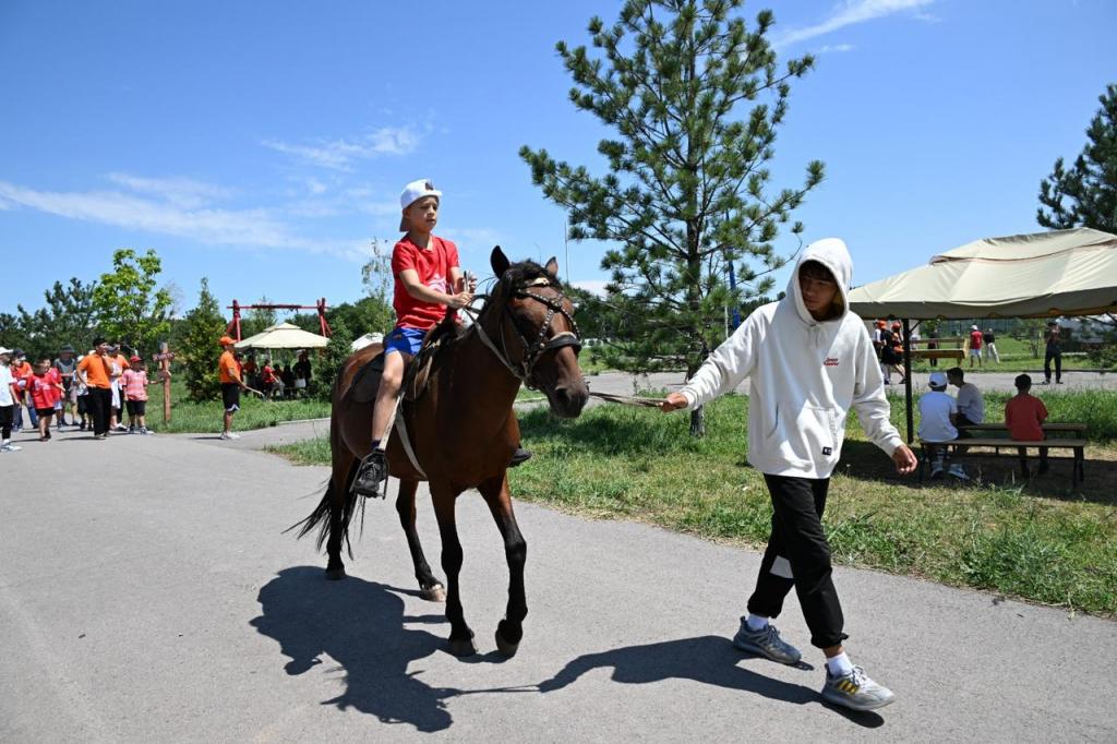 Сейчас в лагере отдыхают 240 алматинских школьников, в том числе 80 детей-воспитанников из Специализированного комплекса «Жанұя» и 12 детей из Центра поддержки детей, находящихся в трудной жизненной ситуаций «Мейірім».