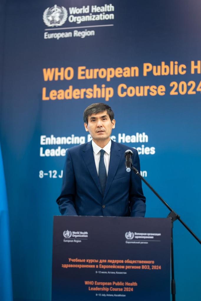 «В последние десятилетия мир столкнулся с многочисленными проблемами, подрывающими, казалось бы, несомненный прогресс на пути к более процветающему и здоровому будущему для всех. В результате взаимосвязи здоровья с экологической устойчивостью и социальными изменениями возрастает важность эффективного лидерства в области общественного здравоохранения. На протяжении всего курса будут затронуты несколько важнейших тем, в том числе проблемы общественного здравоохранения на глобальном и региональном уровнях, их причины и решения, а также пути межведомственного сотрудничества», — отметил в своей приветственной речи представитель ВОЗ в Казахстане др-р Скендер Сыла.