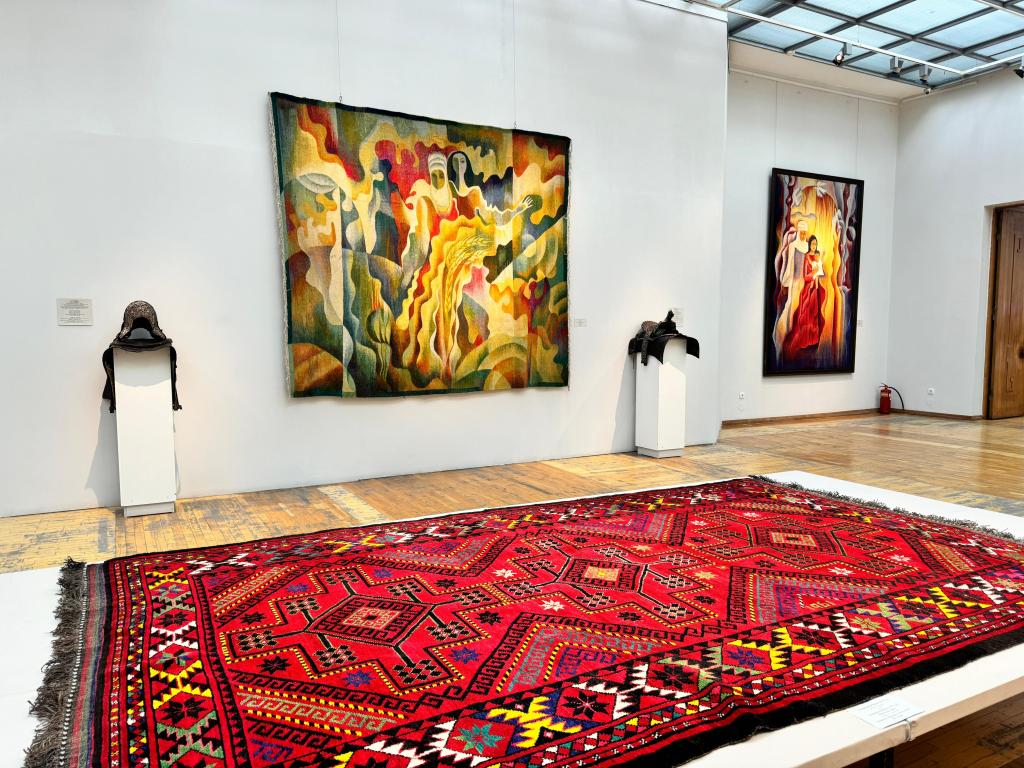 Особое внимание уделяется тканым коврам и вышитым настенным коврам — тускиизам, которые символизируют семейное счастье и благополучие. Также представлены гобелены, важный вид современного декоративно-прикладного искусства в Казахстане.