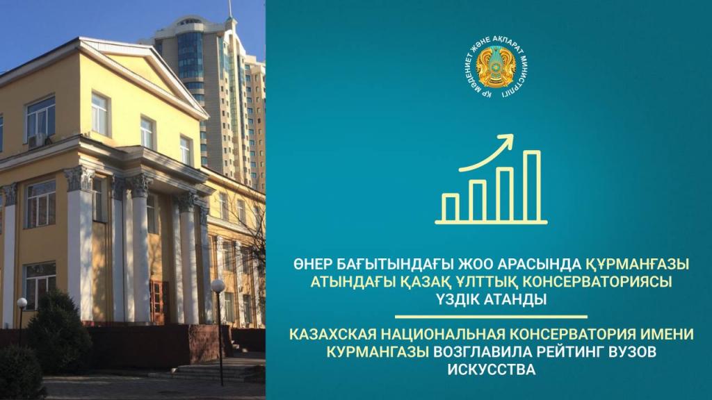 Казахская национальная консерватория имени Курмангазы заняла первое место. Ранее учебное заведение второй год подряд возглавило международный рейтинг «IAAR Eurasian University Ranking (IAAR EUR) — 2023» среди вузов искусства и культуры.