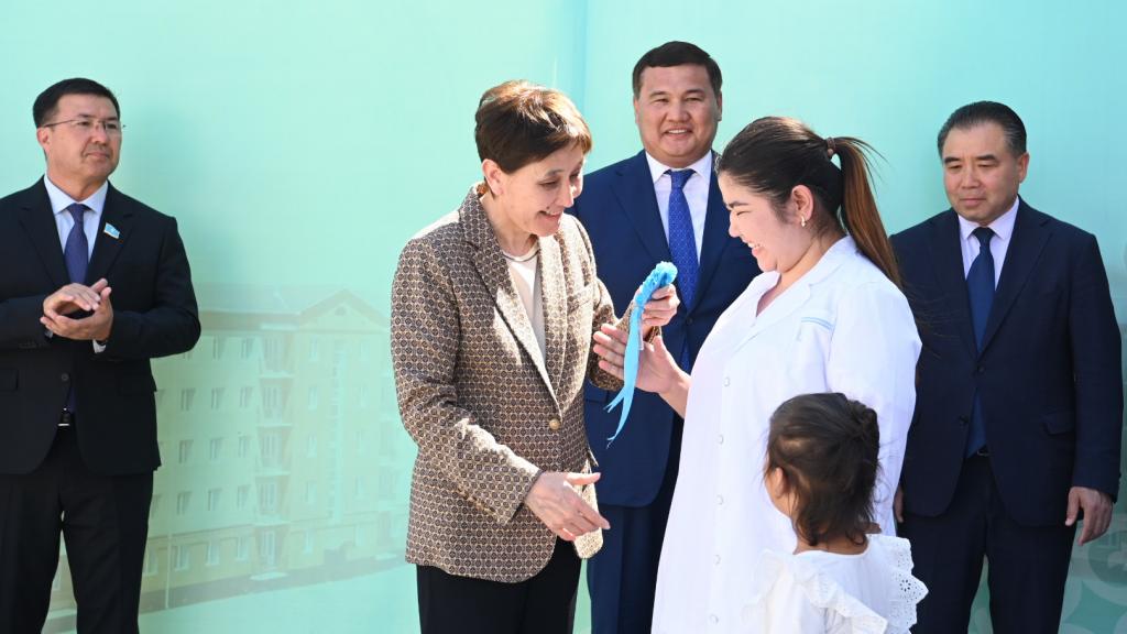 Заместитель Премьер-Министра РК Тамара Дуйсенова в рамках рабочей поездки в Кызылординскую область приняла участие в церемонии вручения ключей от квартир в областном центре. 10 пятиэтажных домов сдали на левом берегу Сырдарьи для 150 семей, стоявших в очереди на жилье.