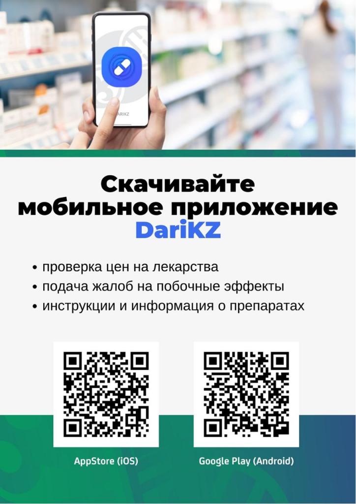 Министерство здравоохранения РК рекомендует гражданам использовать мобильное приложение Dari.kz для отслеживания предельных розничных цен на лекарства. Это позволит обеспечить доступность и справедливость ценообразования на жизненно важные медикаменты.