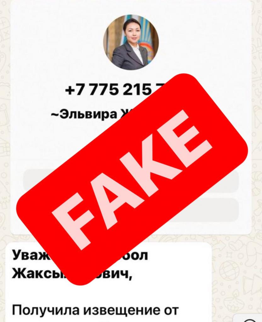В мессенджере WhatsApp рассылаются сообщения якобы от бывшего руководителя пресс-службы акимата Астаны с просьбой связаться по их указанному номеру с акимом города.