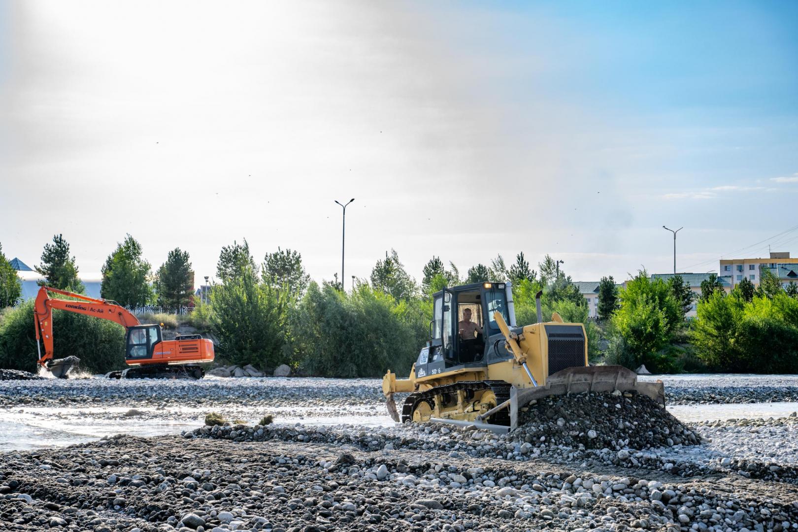 Начаты работы по спрямлению русла реки от областного перинатального центра до моста по ул. Жансугурова и подъездные пути.