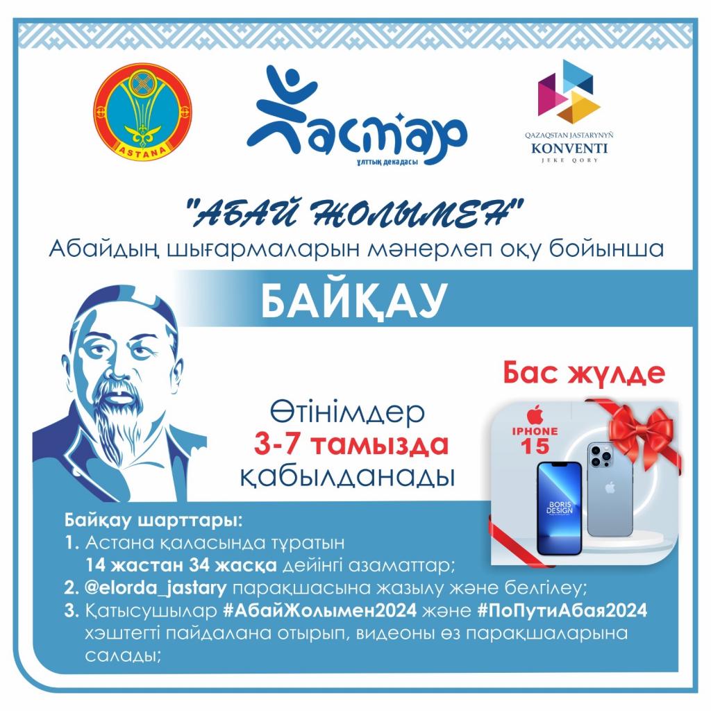 В рамках праздника в Астане стартовал конкурс “По пути Абая”. Главный приз — IPhone 15.