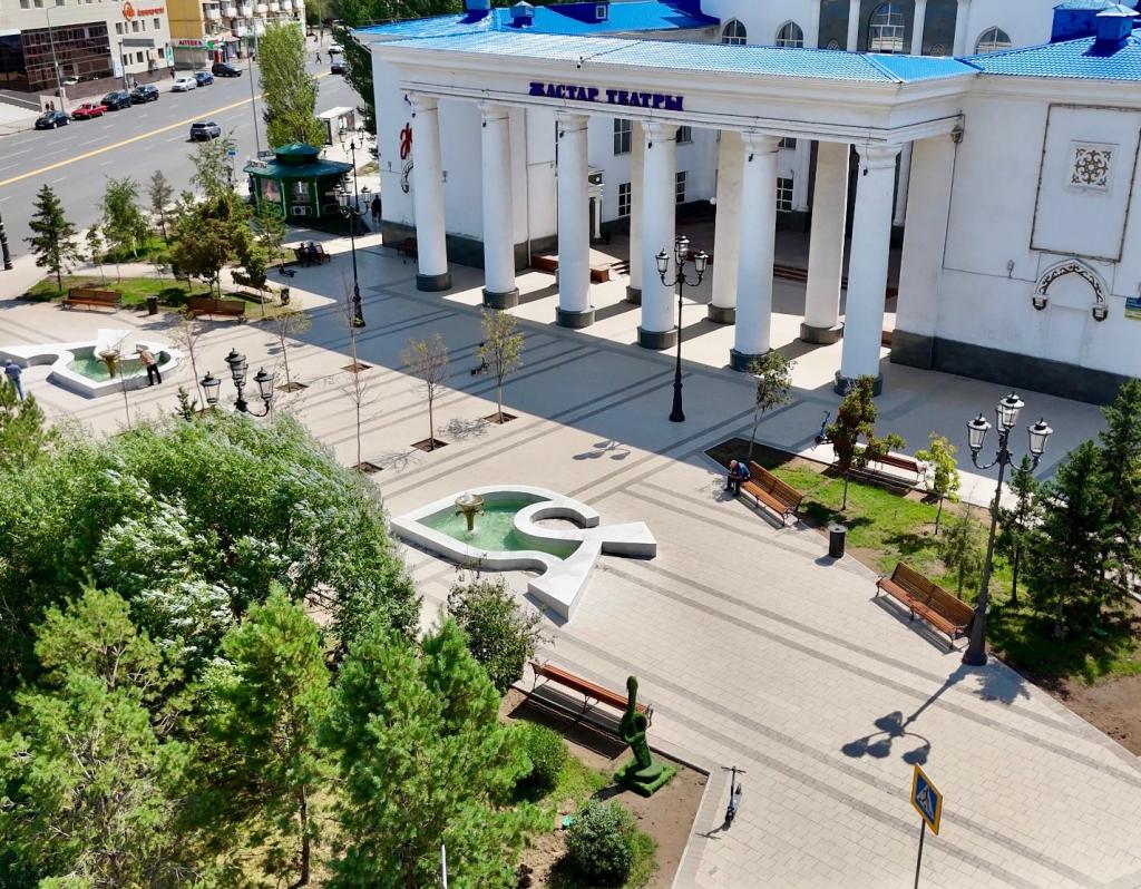 Перед театром «Жастар» установили новый фонтанный комплекс, выполненный в форме дельфинов. Это современное сооружение стало ярким украшением улицы и привлекает внимание как горожан, так и гостей города. Кроме того, вдоль улицы появились малые архитектурные формы, места для настольных игр, игровые арт-объекты, качели и шезлонги. Эти элементы создают комфортное и привлекательное пространство для отдыха и развлечений.