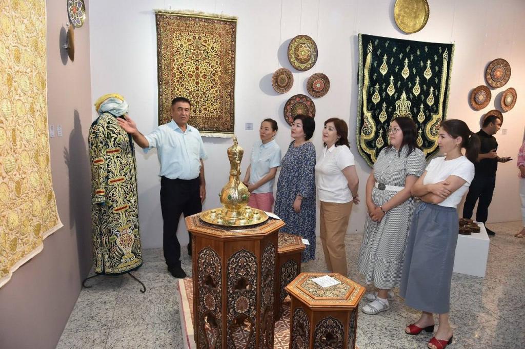 В Национальном музее РК сегодня открылась выставка изобразительного и народного прикладного искусства Узбекистана. В экспозиции представлено более 180 работ – это изделия из дерева, вышивки-сюзане, адрасы и шелка ручного ткачества, работы мастеров чеканки и миниатюры, а также керамика из различных регионов.