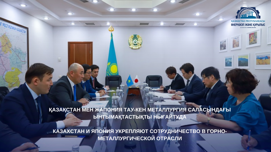 8 августа т.г. состоялась встреча Министра промышленности и строительства Каната Шарлапаева с Председателем и Генеральным директором Японской Организации по металлургической и энергетической безопасности «JOGMEC» Ichiro Takahara.
