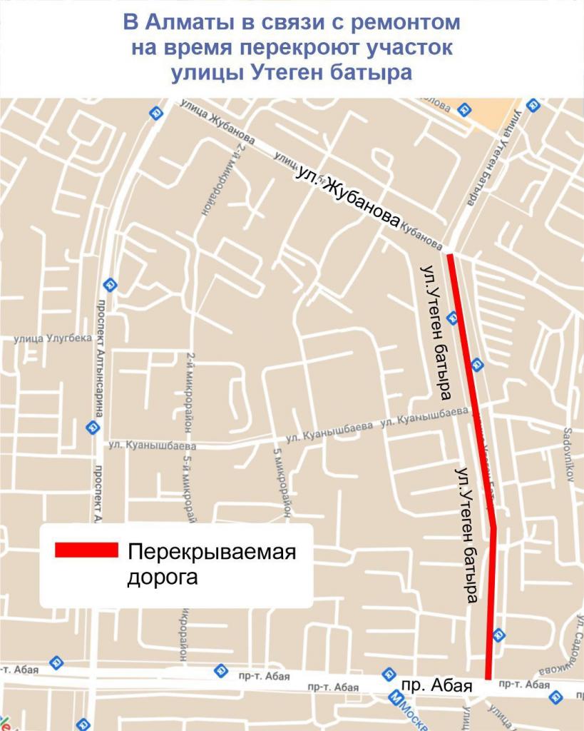 В связи с проведением среднего ремонта участка улицы Утеген батыр вводятся временные ограничения движения.
