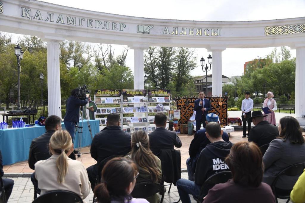 Литературно — музыкальный вечер «Абай-руханияттың алтын қазығы» прошел на Аллее писателей, расположенной рядом с Парком журналистов.