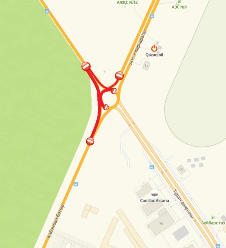 — пр.Туран от ул. Хусейн бен Талал до кольца «Астана Жулдызы»;