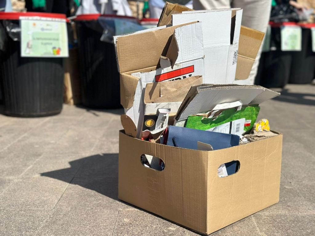 В парке Жетысу были установлены зона для сбора одежды и специализированные баки для сбора мусора – картона, пластика, бумаги, стекла, просроченных лекарств, алюминиевых банок и др.
