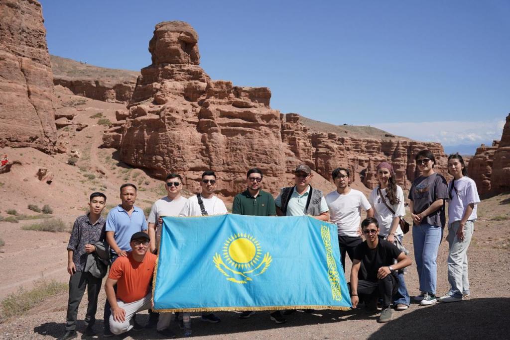Кроме того, участники тура приняли участие в открытии памятника Райымбеку батыру, а также посетили Кольсайские озера и Чарынское ущелье.