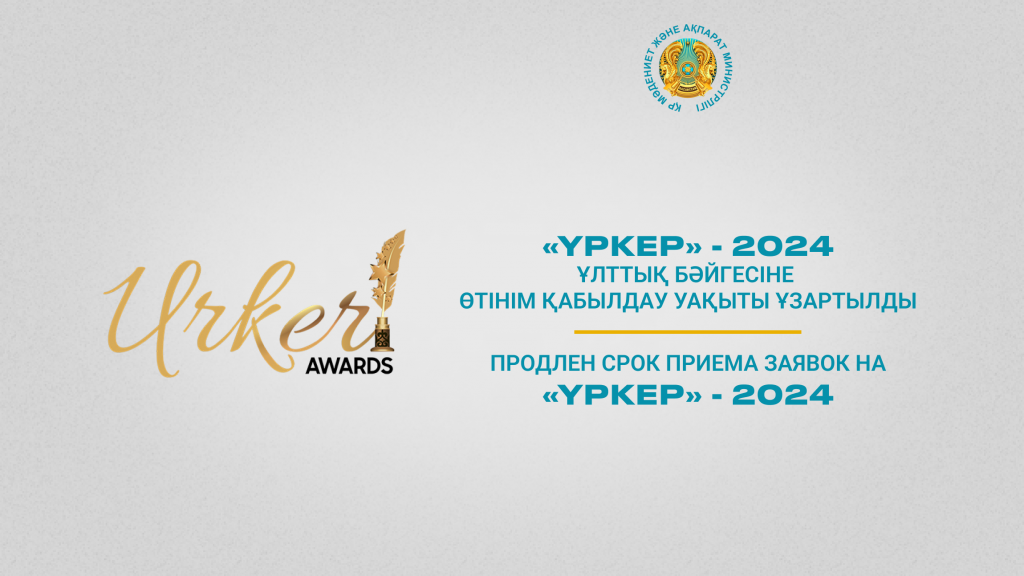 Продлен срок приема заявок на соискание Национальной премии «ҮРКЕР» -2024» в области печатной, радио, интернет – журналистики на одну неделю, до 10 сентября 2024 года.