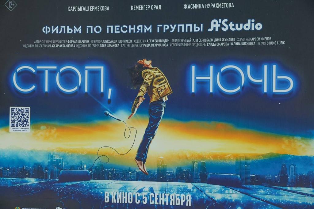 Сегодня в Астане прошел показ полнометражного киномюзикла «Стоп, ночь». Мероприятие посетили председатель Комитета культуры Министерства культуры и информации РК Кумис Сеитова, режиссер Фархат Шарипов, продюсер Байгали Серкебаев, актеры фильма, а также деятели культуры и искусства.