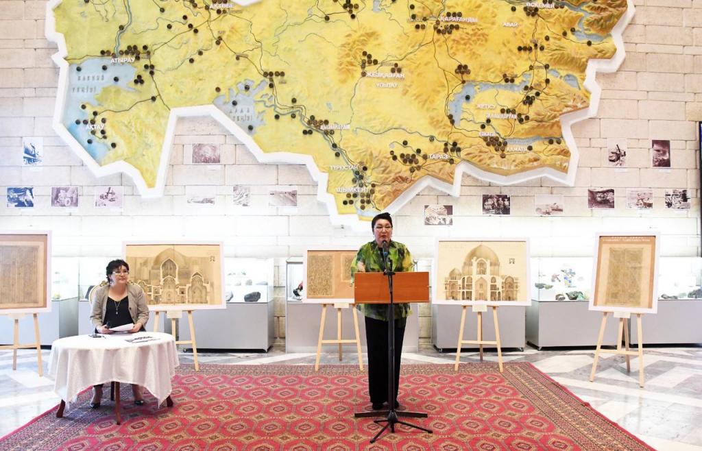 Одним из ключевых моментов мероприятия стало представление уникальных экспонатов, направленных на реставрацию. Среди них рисунки резной двери усыпальницы Ходжи Ахмеда Ясауи, выполненные известным казахским художником Молдахметом Кенбаевым, и обмерные чертежи элементов архитектурного комплекса XIV века, созданные исследователем Л. Ю. Маньковской.