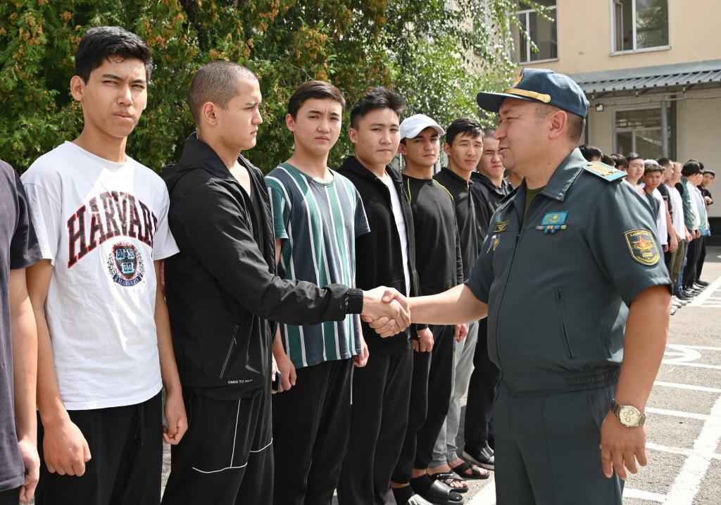 К призывникам, которые будут служить в Пограничной службе КНБ, с напутственным словом обратился начальник городского Департамента по делам обороны полковник Талгат Озехан.