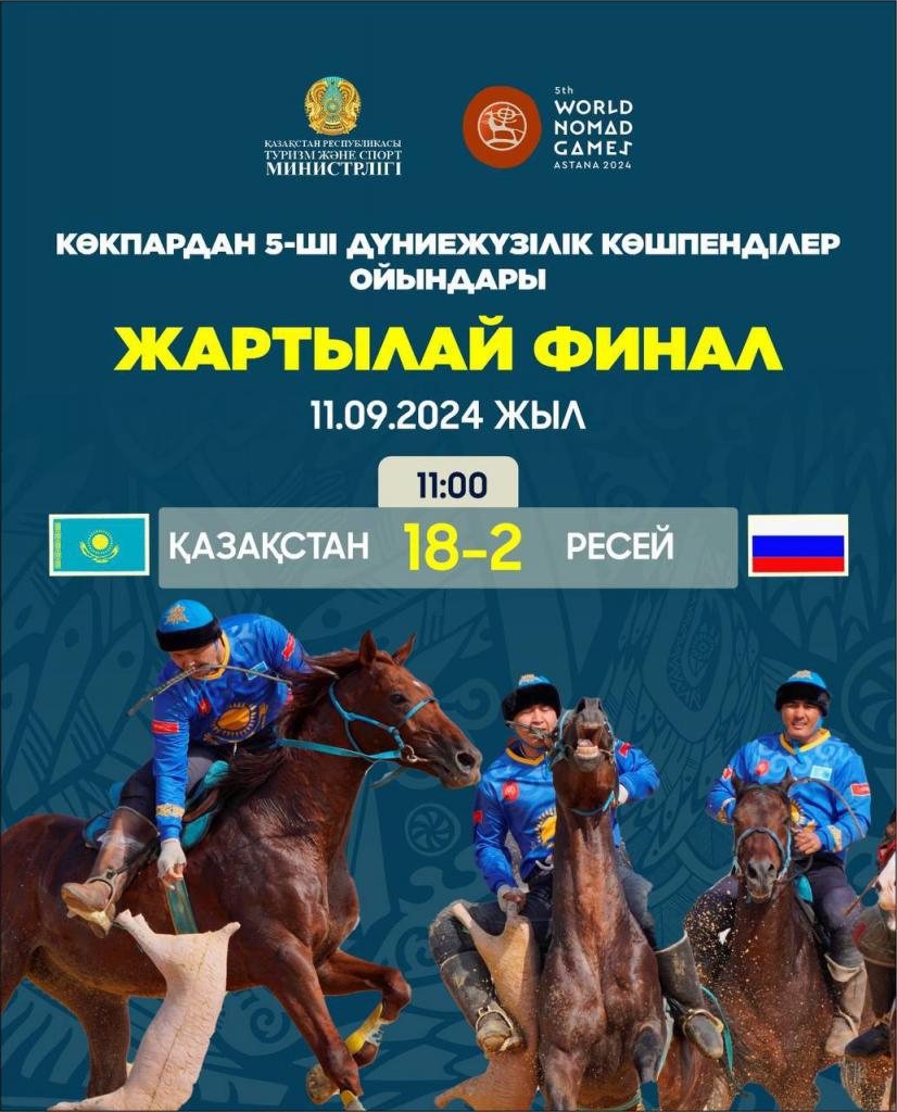 Сегодня наши кокпаристы победили команду России со счётом 18:2. Второй финалист определится после игры между командами Кыргызстана и Турции. Победитель встретится с командой Казахстана в финале V Всемирных игр кочевников.
