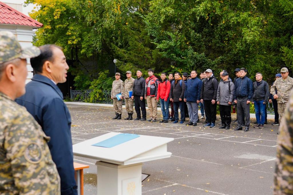 «Сегодня мы проводим очередные 10-дневные армейские сборы. В течение этих дней 100 призванных из запаса военнообязанных астанчан будут повышать свою готовность к обороне на теоретических и практических занятиях. Боевую подготовку они пройдут на одном из полигонов Министерства обороны», — рассказал командир бригады территориальной обороны города Астаны Омар Орынбаев.