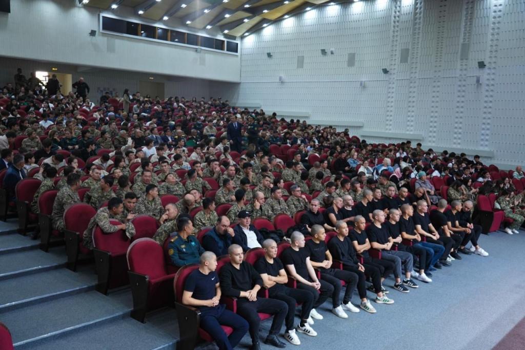 «В этом году по стране призваны на срочную воинскую службу более 40 тысяч человек, половина из них уже стала солдатами весенней кампании и приняла Военную присягу перед Родиной. В этой осенней призывной кампании в воинские части приглашаем более 20 тысяч молодых людей в возрасте от 18 до 27 лет. Вот еще одна часть из них. Защита Родины – это не просто слово, это умение каждого гражданина научиться защищать свой дом и семью, овладеть современной техникой и оружием, а главное, использовать свою волю ради светлого будущего человечества!»,- сказал начальник департамента организационно-мобилизационной работы Генерального штаба Вооруженных сил полковник Фархат Курмангажинов.