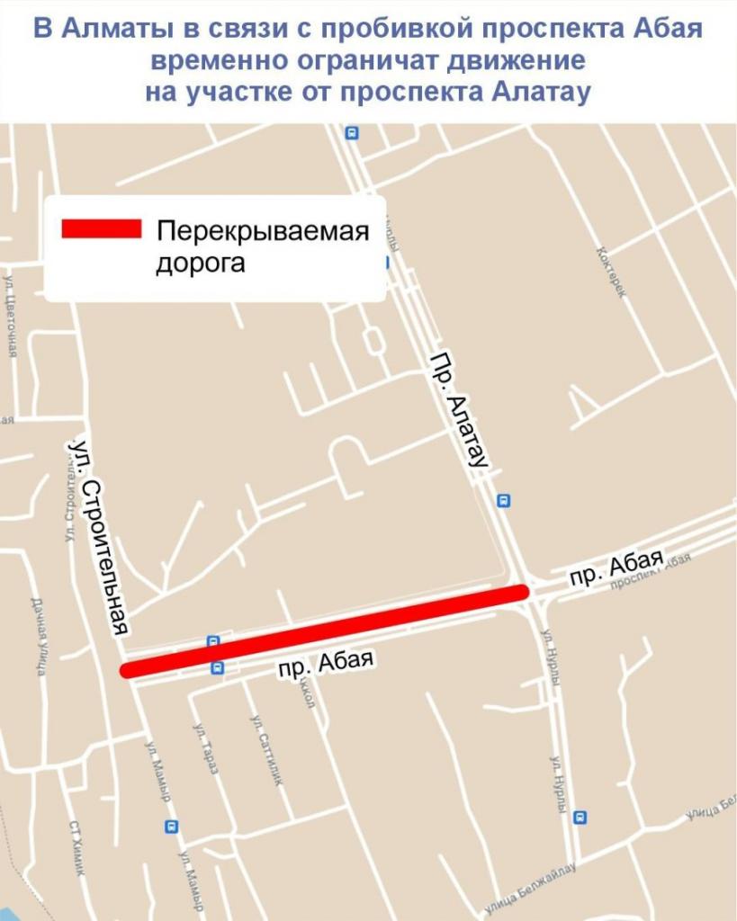 В Алматы в связи с работами по пробивке проспекта Абая до границы города, временно вводятся ограничения движения.