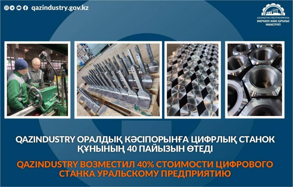 На уральском предприятии по производству технологического оборудования для нефтегазохимической промышленности BatysIndustry заработал станок термической резки с числовым программным управлением (ЧПУ). Предприятие смогло возместить 40% его стоимости, обратившись в КЦИЭ «QazIndustry». Возмещенную сумму предприятие направило на дальнешее развитие производства.
