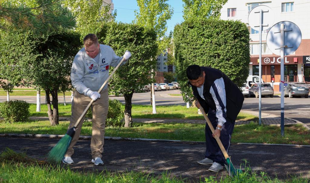 Фронт работ для управлений и департаментов Министерства обороны проходил по улице Акмешит в пределах улиц Сыганак, Жанибека и Керея ханов. Структурные подразделения Генерального штаба Вооруженных сил занимались уборкой территории вокруг административного здания министерства.