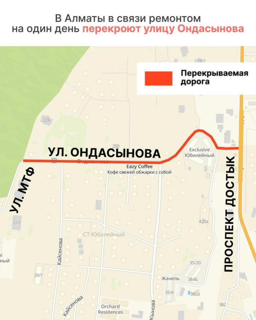 В связи с проведением ремонтных работ вводятся временные ограничения движения на улице Ондасынова.