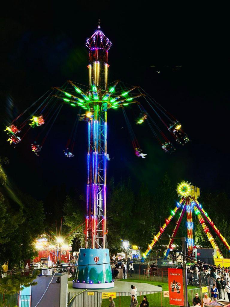 Добавим, что в этом году в Центральном парке также появились новые аттракционы — «Седьмое небо» и большой маятник «Экстрим». Но самым интересным для посетителей стал новый аттракцион «Воздушное путешествие», высотная монорельсовая дорога, которая проходит в зелёной зоне парка и заканчивается с видом на лебединый пруд.