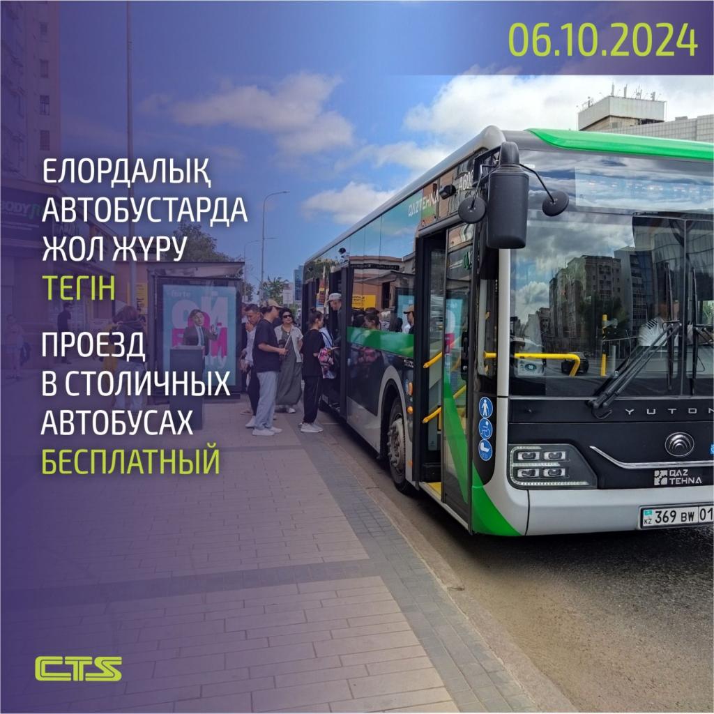 6 октября, в день проведения республиканского референдума, проезд в городских и пригородных маршрутах будет бесплатным.