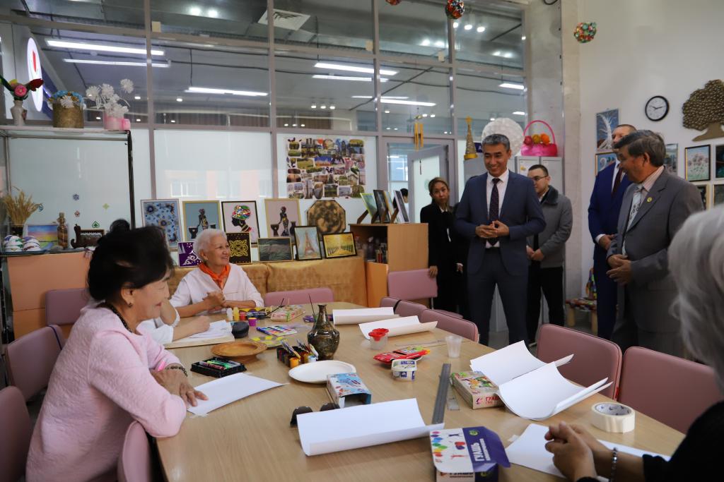 Вице-министр труда и социальной защиты населения РК Олжас Анафин посетил центр активного долголетия г. Астаны и тружеников тыла в годы Великой отечественной войны. Он поздравил пенсионеров с Днем пожилых людей.