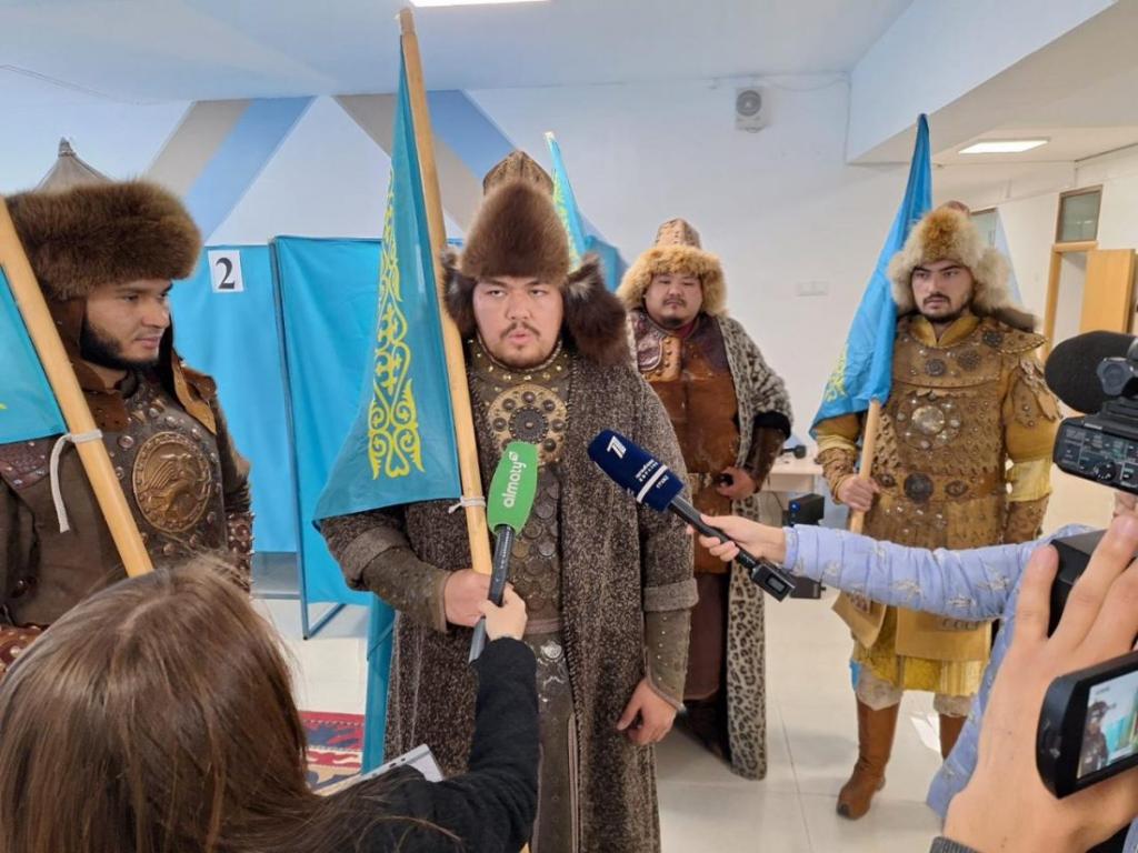 На избирательном участке №585, расположенном в школе-лицее №173 мегаполиса, алматинцев встречали двухметровые батыры. Данной акцией организаторы создали тематическую атмосферу, позволяющую окунуться в мир номадов и проникнуться духом Великой степи.