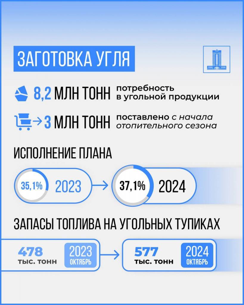 В текущем отопительном периоде потребность в угольной продукции составляет 8,2 млн. тонн. С начала отопительного сезона поставлено порядка 3 млн. тонн.