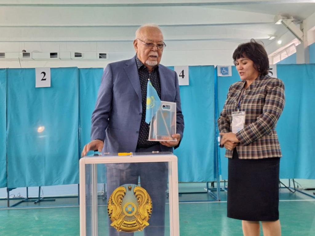 Легенда казахского кино вместе с супругой проголосовал на избирательном участке №382, расположенном в школе-лицее №131 имени Б. Момышулы.