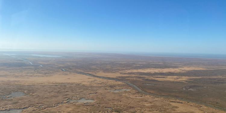 Воздушная авиация МЧС тушит возгорание камыша в Атырауской области