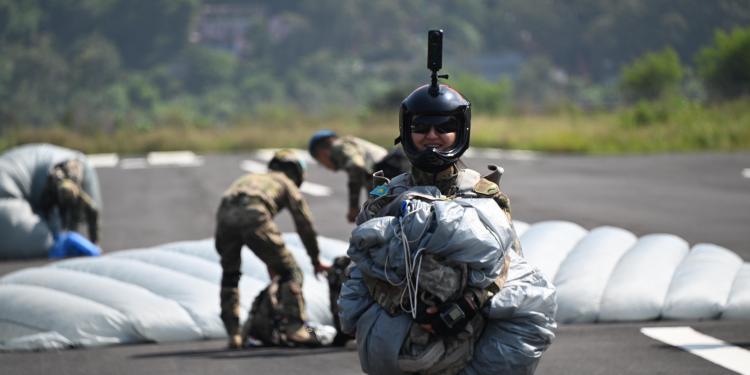Военнослужащие Десантно-штурмовых войск Вооруженных сил РК ефрейторы Балжан Мусатаева и Маржан Сайранова выполнили сложные прыжки в предгорье Гималаев на учениях «КазИнд-2024».