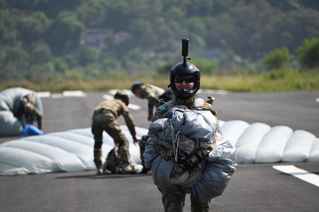 Военнослужащие Десантно-штурмовых войск Вооруженных сил РК ефрейторы Балжан Мусатаева и Маржан Сайранова выполнили сложные прыжки в предгорье Гималаев на учениях «КазИнд-2024».