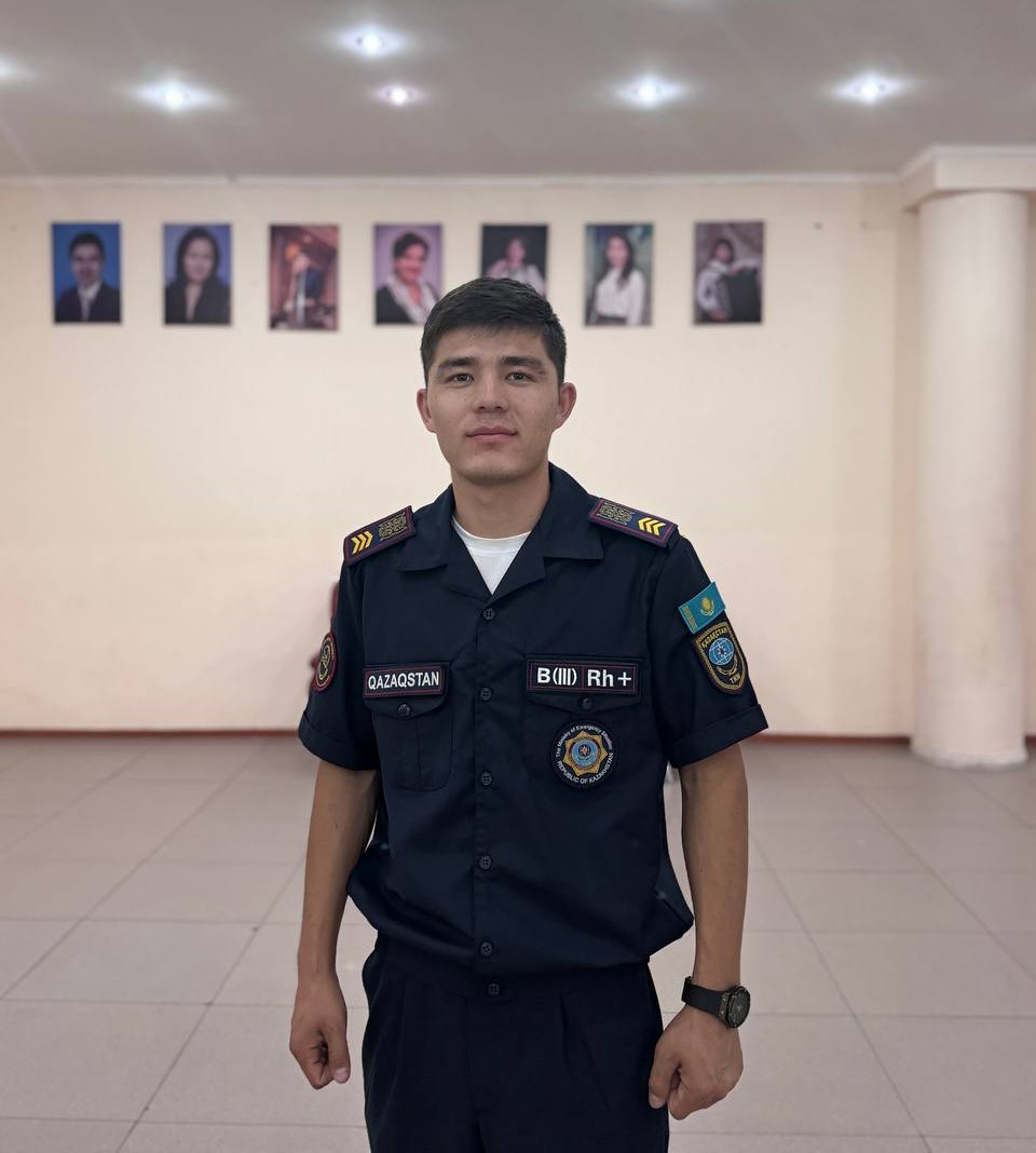 Старший пожарный—спасатель Абдухалық Жалғас работает в специализированной пожарной части № 1 Службы пожаротушения и аварийно-спасательных работ ДЧС Мангистауской области с 2022 года.